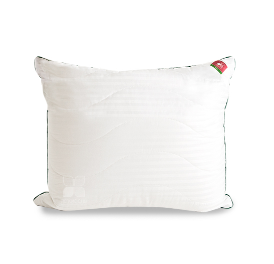 В этой подушке в качестве наполнителя используются искусственный «лебяжий пух» и бамбуковое волокно. Хочется отметить массу плюсов бамбукового волокна: абсолютно не вызывает аллергии у детей и взрослых, не сминается и не собирается в комки. Также отметим гигроскопичность бамбукового волокна и его особую мягкость. Пышное микроволокно во внутренней части подушки делает ее мягкой, комфортной и долговечной.