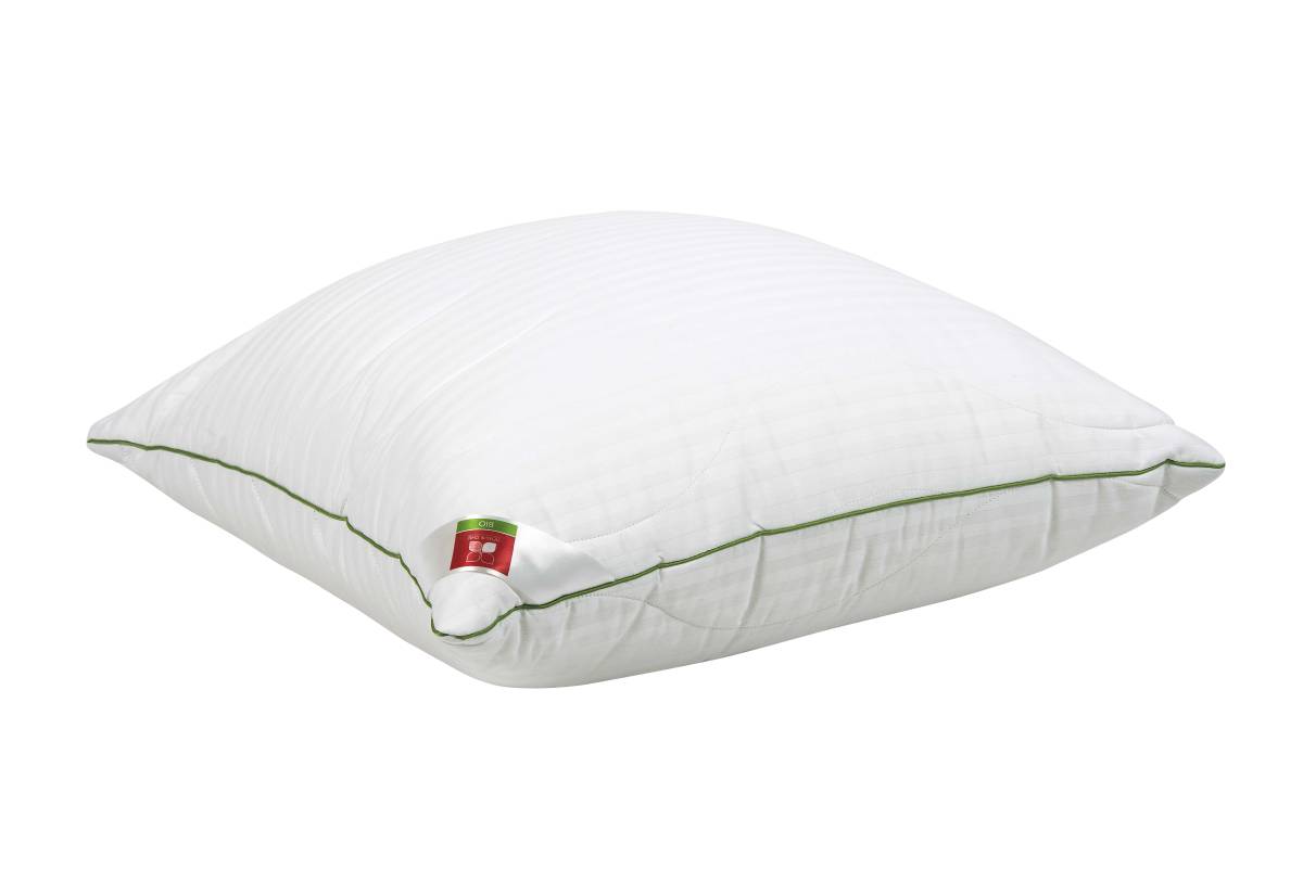 Подушка выполнена из ткани 100 % хлопка сатин с тиснением страйп в белом цвете, отделка по краю подушки кантом травяного цвета, фирменная упаковка конверт ПВД, спанбонд.